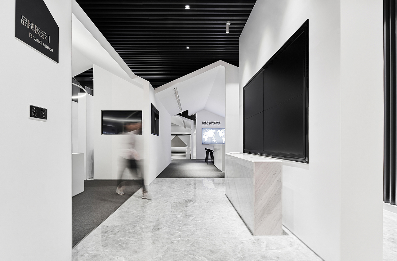 衣食住行是組成家的要素,同時也可以涵蓋EMTEK的業(yè)務(wù)范圍,在EMTEK展廳設(shè)計中,眾舍試圖以“家”的概念營造空間。品牌檢測展品在四個不同的“家“中展示,在原本通敞空洞的辦公樓間層植入了一個“錯落有致,屋舍儼然“的展示空間