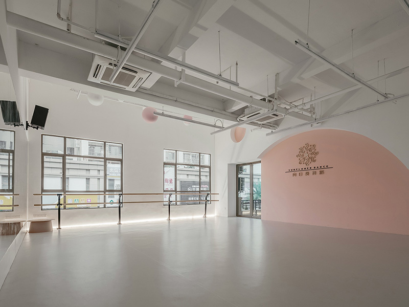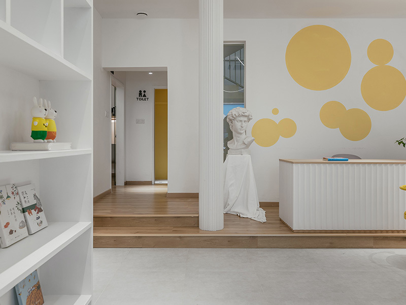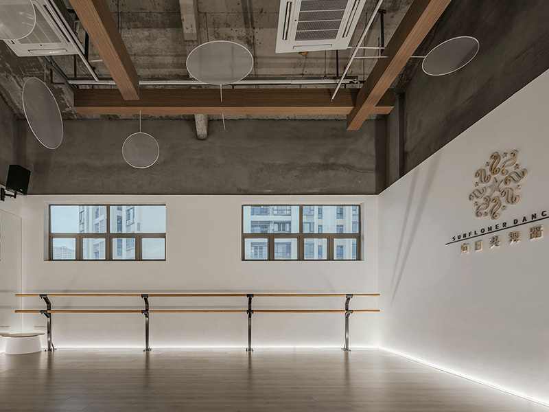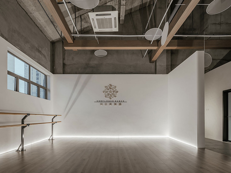 以「向日葵」為品牌概念衍生,設(shè)計師提取了明黃色調(diào)以及花瓣的序列感為設(shè)計靈感,希望創(chuàng)造一個品牌形象鮮明又充滿童趣的兒童舞蹈、藝術(shù)教育空間。