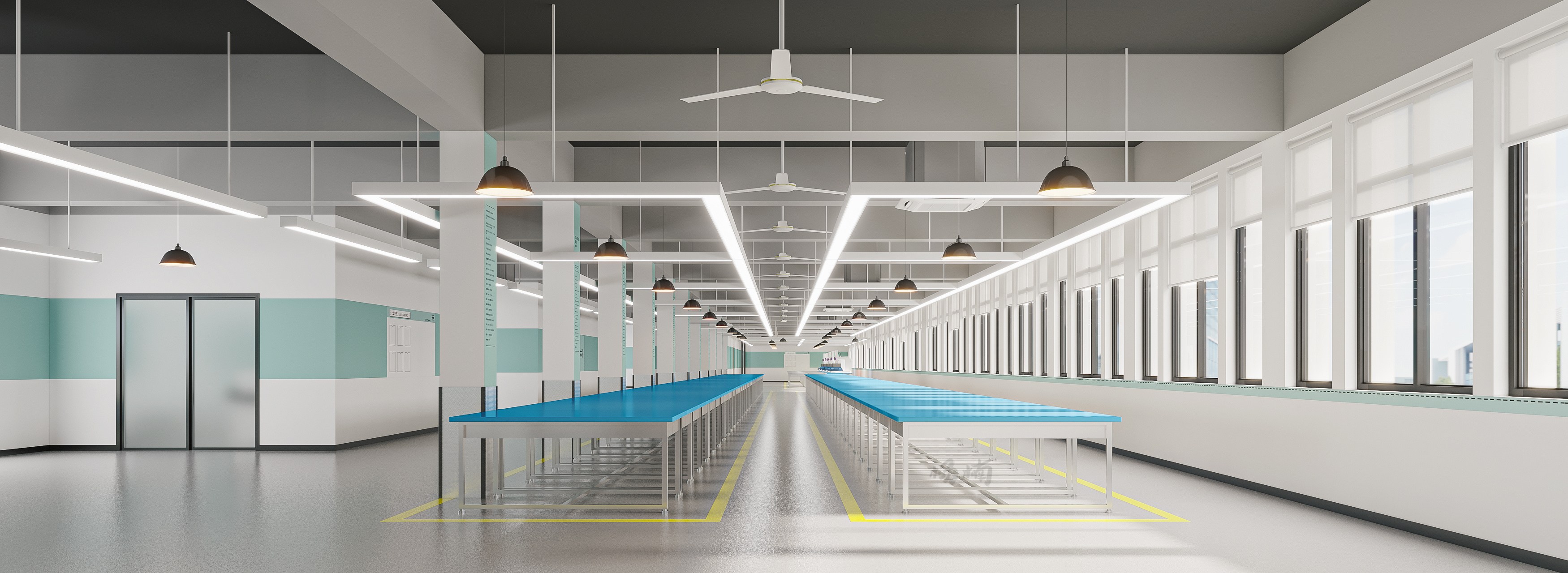 采用簡(jiǎn)約而不失格調(diào)的設(shè)計(jì)風(fēng)格,追求空間的最大利用率與視覺(jué)的純粹美感。 墻面與地面選用淡色系材料,搭配明亮的照明,營(yíng)造出寬敞明亮的工作環(huán)境。 工作區(qū)域布局清晰,流線(xiàn)型設(shè)計(jì)減少阻礙,提升生產(chǎn)效率,同時(shí)讓員工在簡(jiǎn)潔的環(huán)境中保持專(zhuān)注與高效