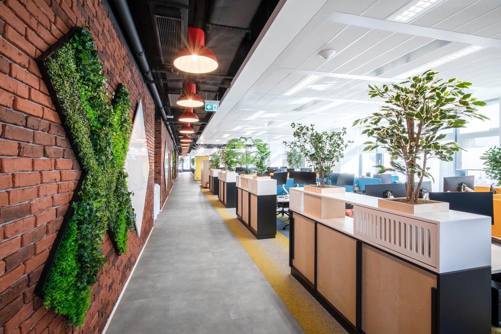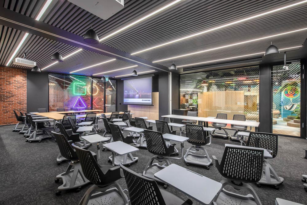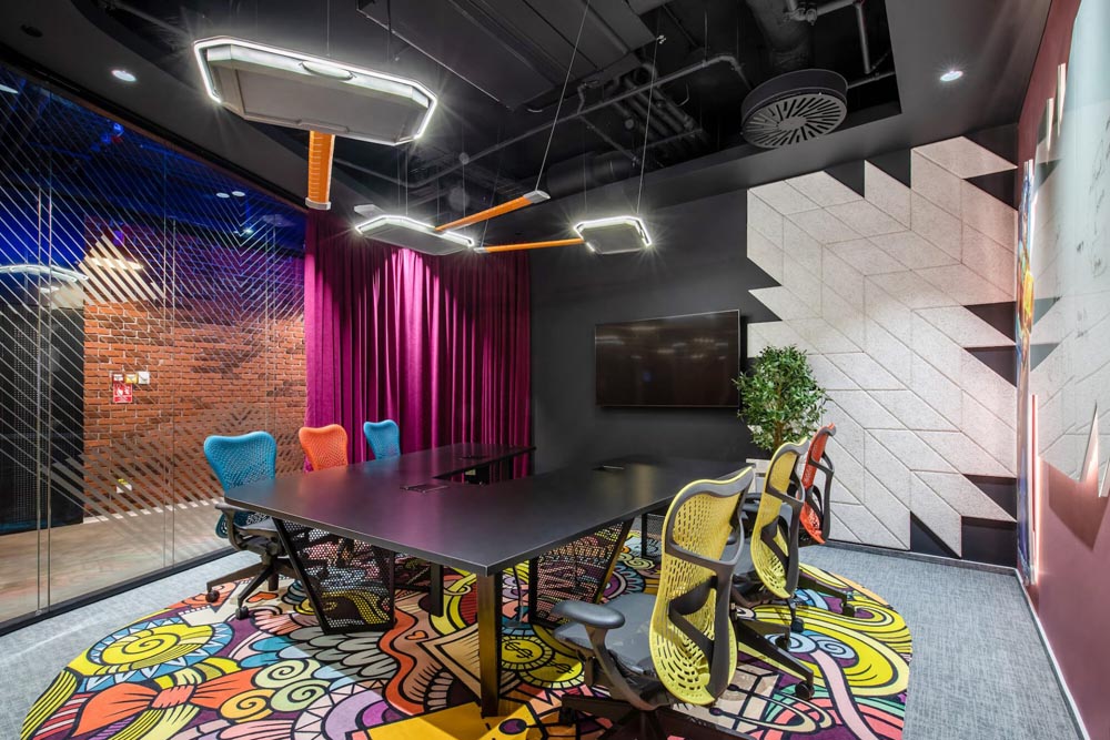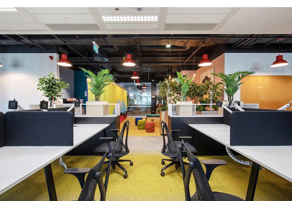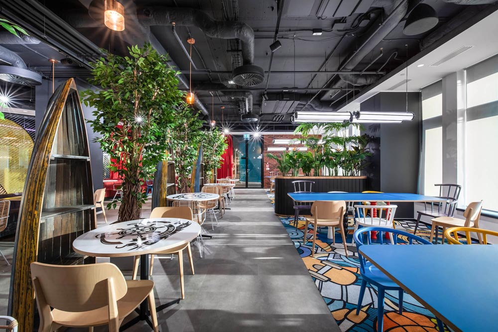 游戲場(chǎng)景、開放協(xié)作多元、綠植、休閑工業(yè)風(fēng),空間以鮮明的色彩配,以特別定制的照明設(shè)備加以強(qiáng)化和凸顯,為員工塑造一個(gè)親和舒適、充滿創(chuàng)意的工作環(huán)境。