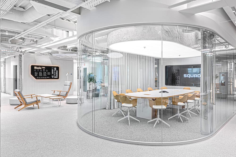 IT科技、廠房改造、生態(tài)工作系統(tǒng)、模塊化家具、盒中盒、時(shí)尚優(yōu)雅白色調(diào),該項(xiàng)目的設(shè)計(jì)概念是創(chuàng)建一個(gè)可隨時(shí)微調(diào)、具有超強(qiáng)適應(yīng)性的生態(tài)工作系統(tǒng),這樣即使在不確定的疫情期間也能優(yōu)化工作流程和效率。
