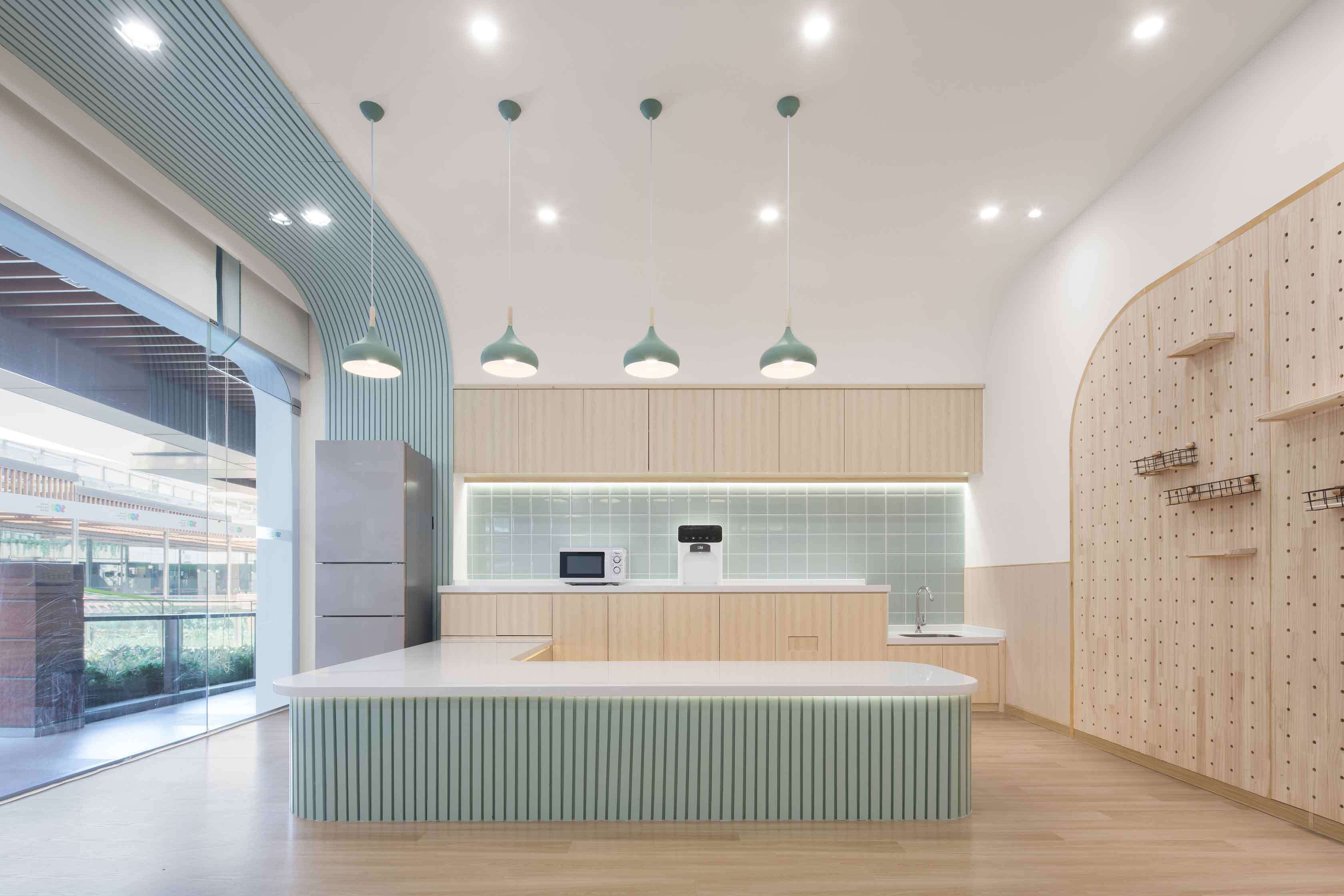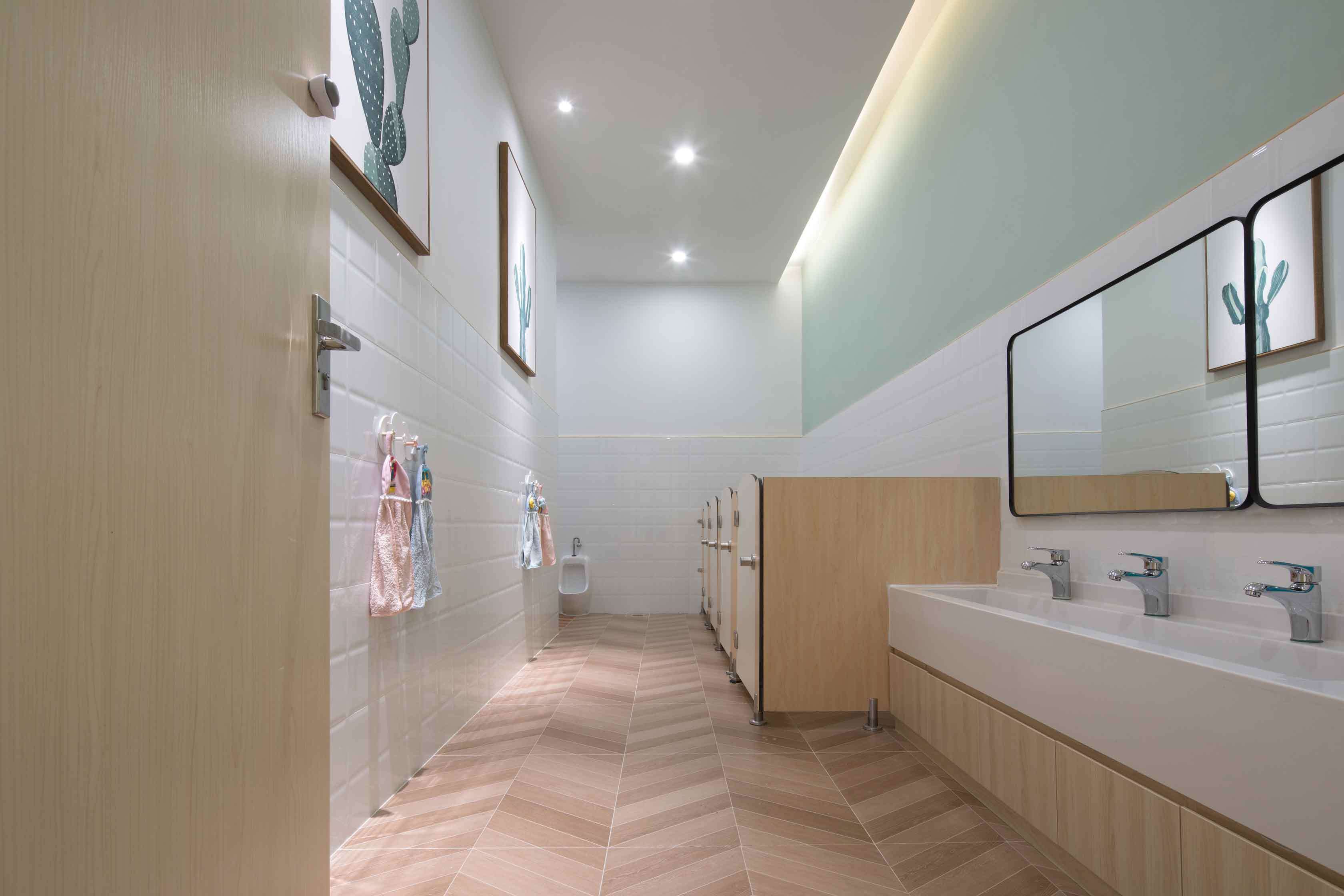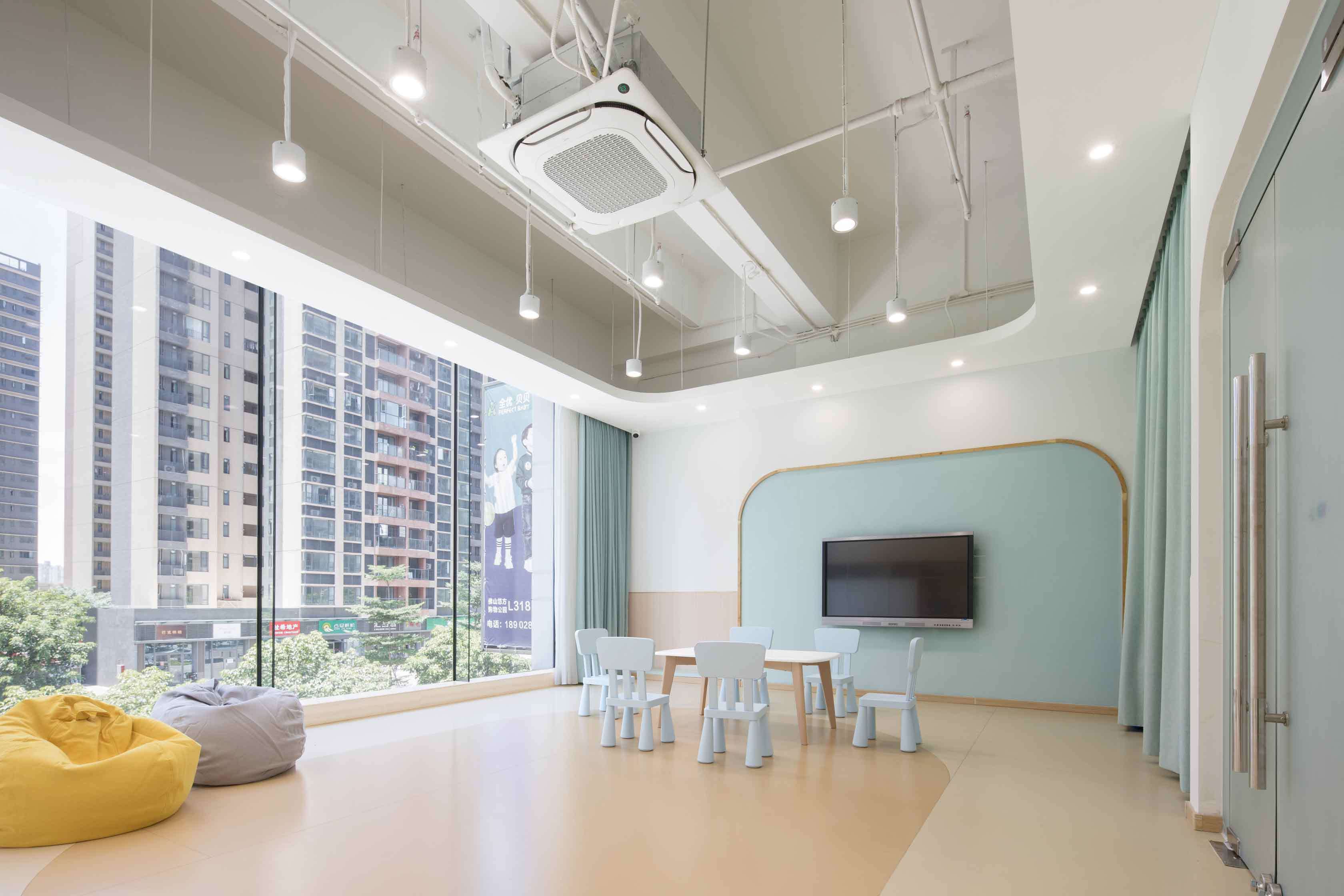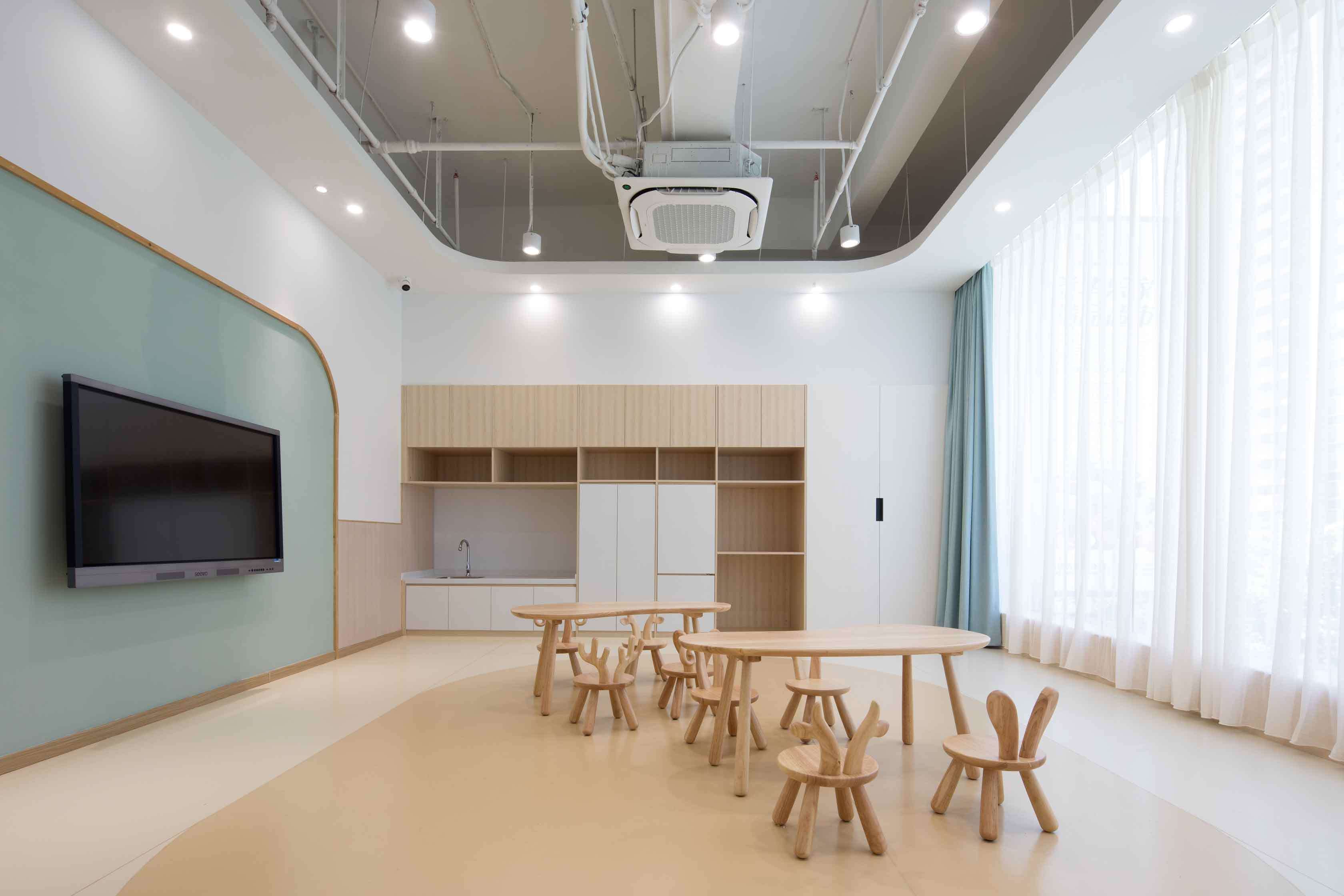 合理利用空間。希望通過對兒童天性、教學(xué)理念和空間特點的剖析,能夠在有限的空間里創(chuàng)造出不緊迫的尺度關(guān)系,破除“小型機構(gòu)孩子的活動和探索尺度不足”的一貫看法,同時打造充滿樂趣和寬松條件的空間感受。