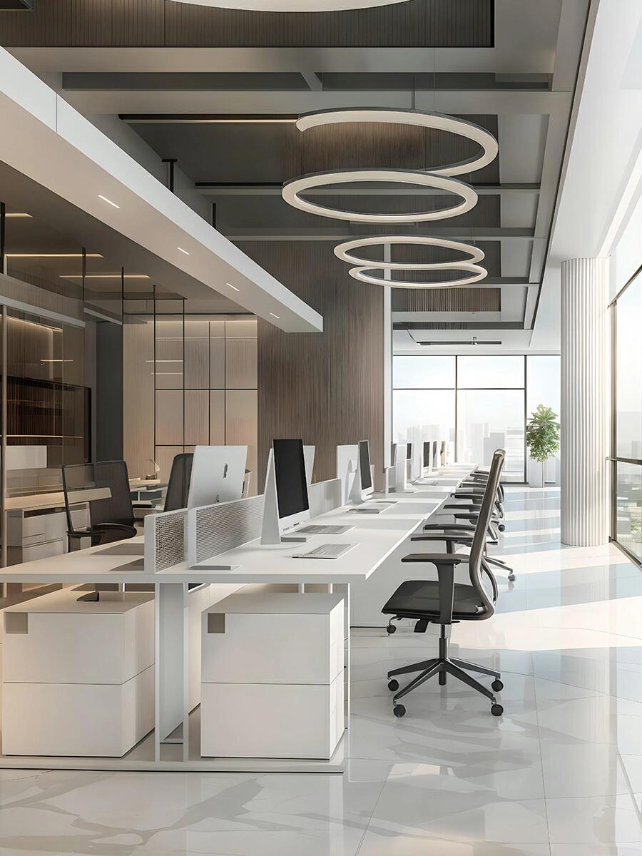 采用“開放式為主、局部隔斷為輔”的布局策略,最大化引入自然采光,有效消解封閉空間帶來的壓抑感,打造開闊通透的辦公環(huán)境。同時(shí),基于企業(yè)辦公需求,科學(xué)劃分辦公區(qū)、休閑區(qū)、洽談區(qū)等功能區(qū)域,以簡(jiǎn)潔流暢的線條勾勒空間輪廓,去除冗余造型裝飾,實(shí)現(xiàn)“功能適配需求,美學(xué)融入日?!薄_@種布局設(shè)計(jì)既保障了辦公效率,又讓空間在長(zhǎng)期使用中更顯韻味,適配企業(yè)發(fā)展中的各類辦公場(chǎng)景。
